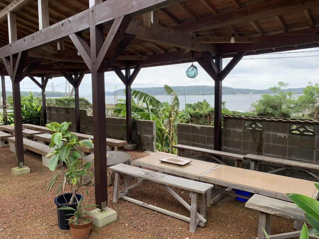 ここのお店はめちゃくちゃ景色が良く、海が一望できるんです。抜群の景色を見ながら食べる牡蠣は最高でした。実際に撮影したテラスの雰囲気はこんな感じ。