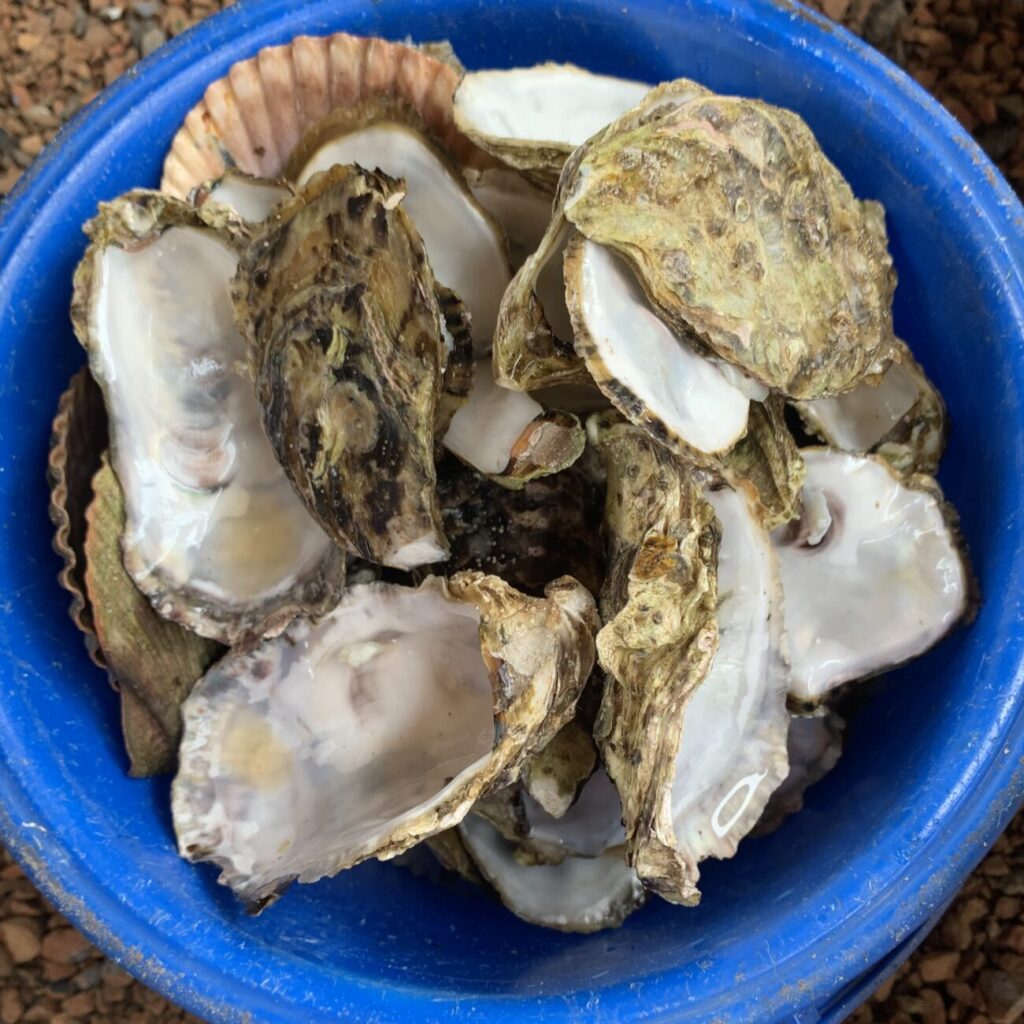 バケツいっぱいに、たくさん牡蠣やホタテを食べました。