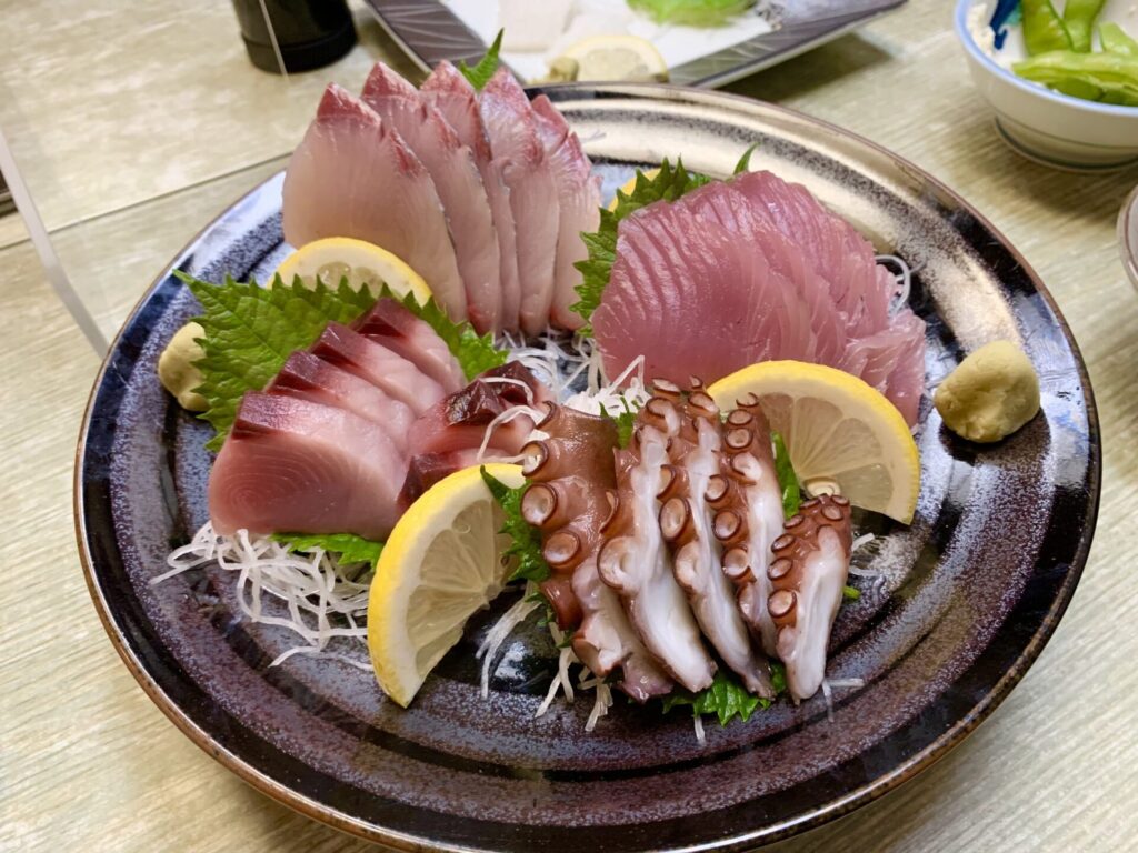 料理はボリュームたっぷりでとても新鮮!お刺身は切り身もすごく分厚くてぷりぷり。めちゃくちゃ美味しかった。。美味しすぎて、みんなでたくさん食べて飲みました。実際に注文した料理の写真もご紹介します。