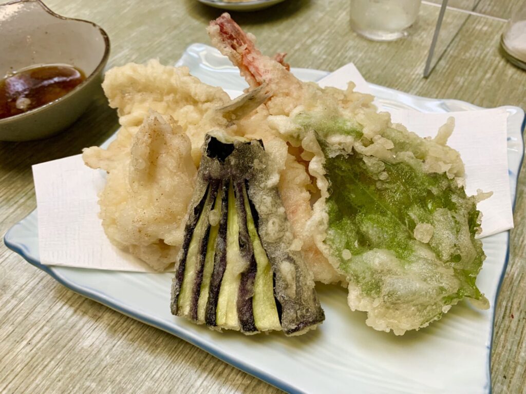 ここでのおすすめは、揚げたてサクサクの天ぷら!ボリュームたっぷりなのに油っぽくないので、お酒のお供にいくらでも食べられちゃいます。